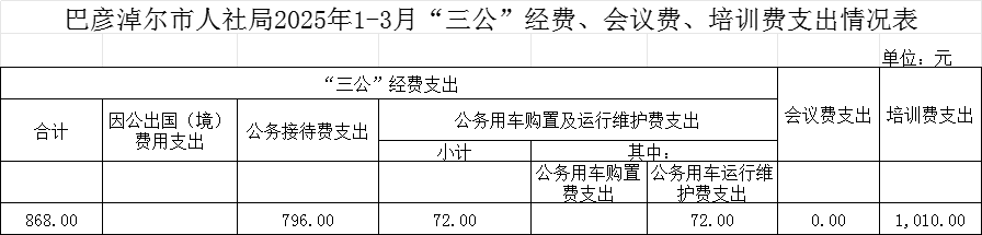 巴彦淖尔市人社局2025年1-3月“三公”经费、会议费、培训费支出情况