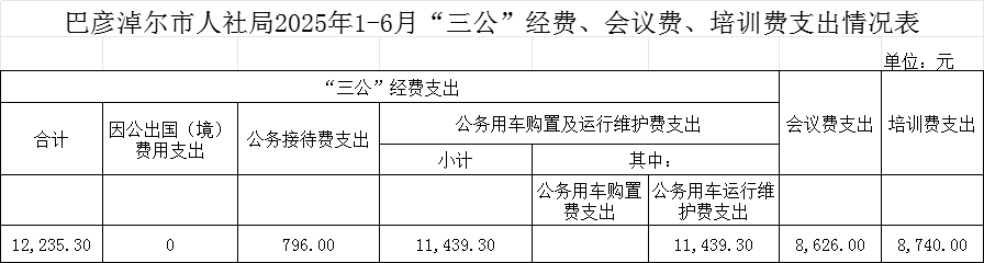 巴彦淖尔市人社局2025年1-6月“三公”经费、会议费、培训费支出情况